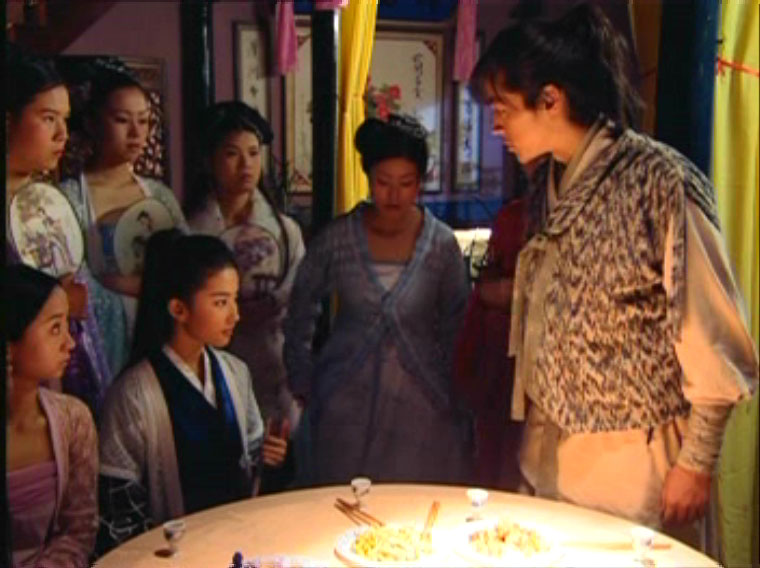 Ling’er disguises as a man to sneak into a brothel to see what Xiaoyao has been doing there.